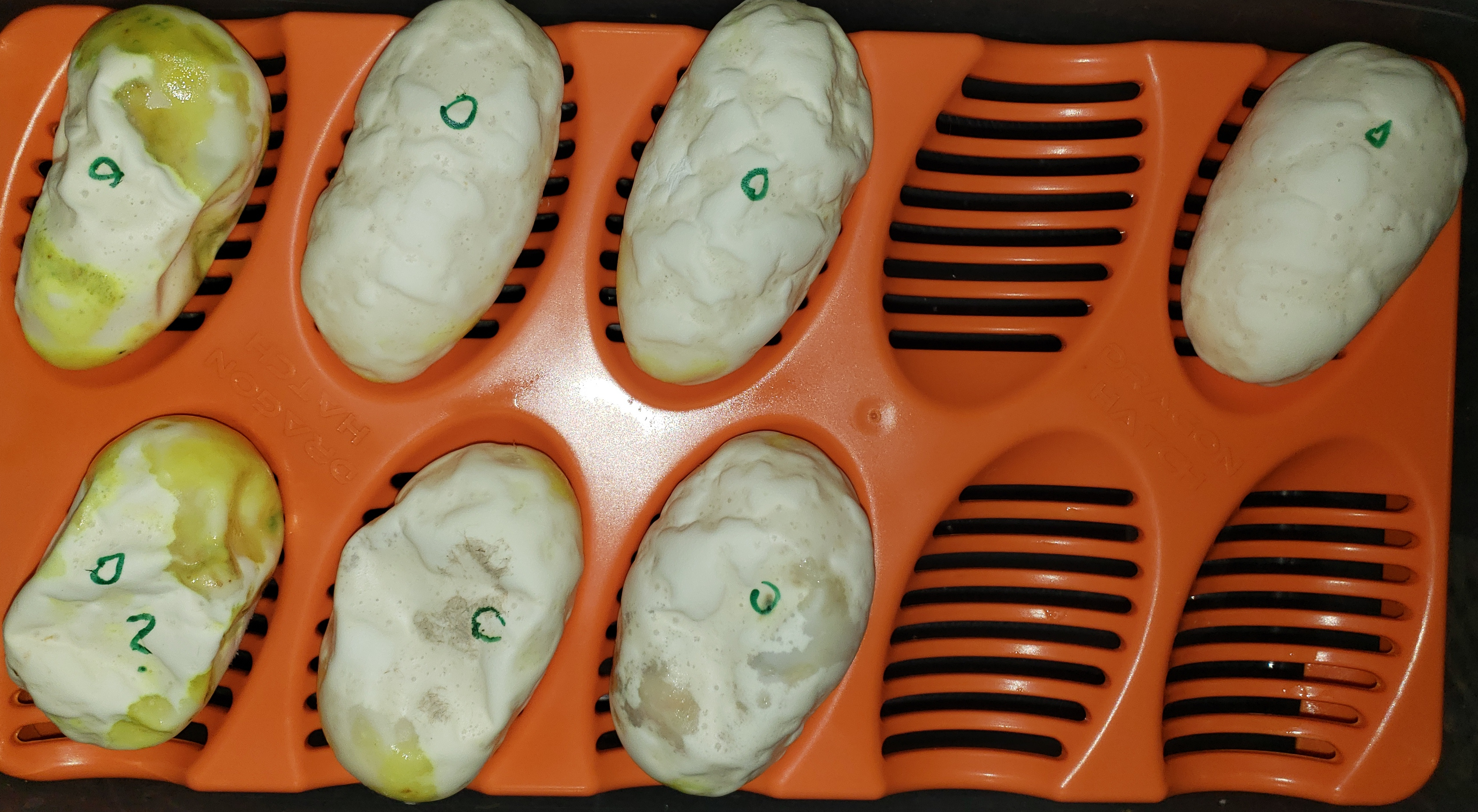 due 7-7-24 10 eggs all severely shriveled early, 2